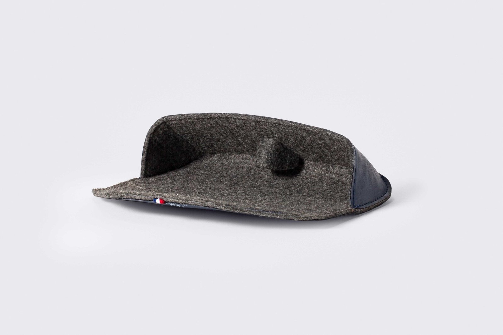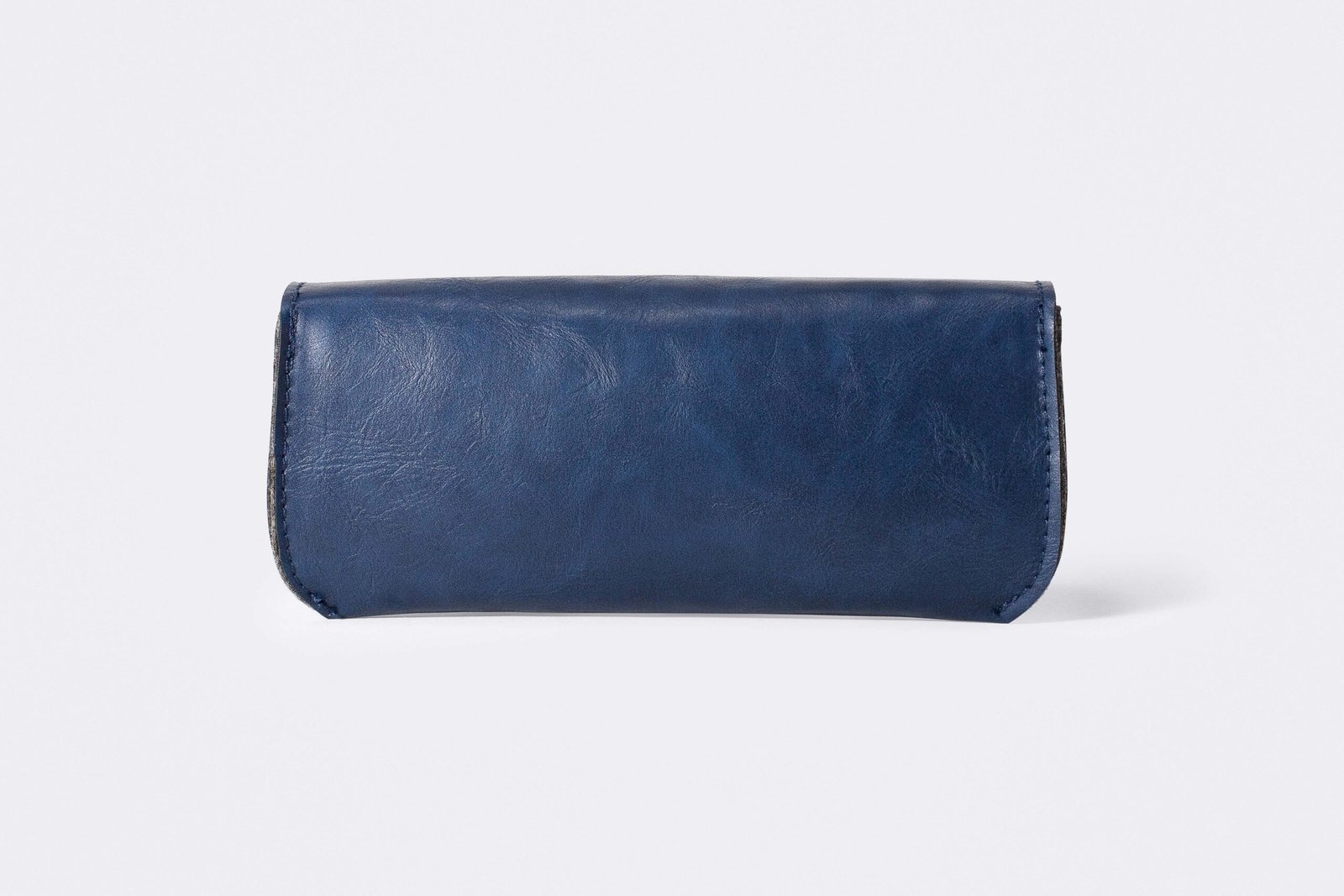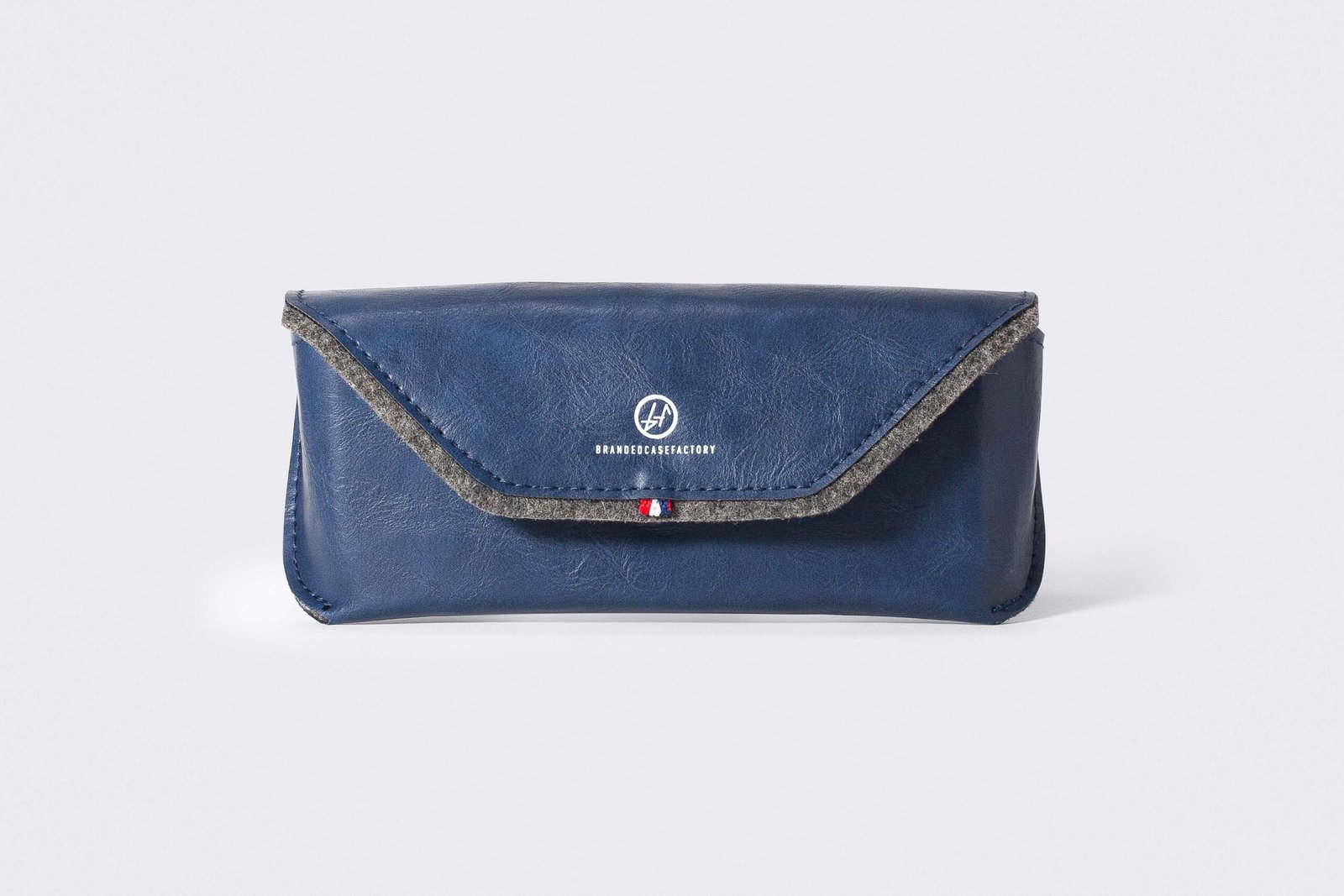 Sophisticated style meets lasting protection. This premium case, crafted in navy blue with a soft grey felt interior, elegantly safeguards your eyewear. Personalize with your logo.